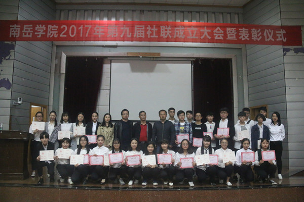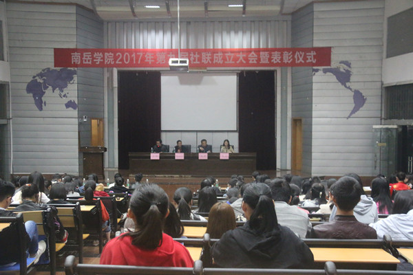 大会在观看上一年度社联活动相册PPT中拉开帷幕。随后,由周华副书记宣读《beat365官方网站2016-2017年度大学生社团联合会“优秀社团成员”、“优秀社团干部”及“优秀社团”表彰决定》,由团委肖炜书记宣布了新一届社团联合会主要学生干部名单。与会领导和老师为现任社联主要学生干部颁发聘书,为优秀社团、优秀社团成员以及优秀社团干部代表颁发荣誉证书。